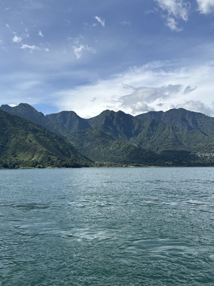 গুয়াতেমালার লেক আতীতলানের মাঝে এক দ্বীপ থেকে তোলা দুটো ছবি।